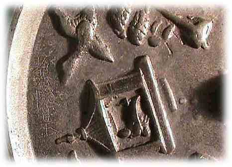 Ананьевское городище. Деталь бронзового зеркала с регистрационной надписью полицейского комиссариата Средней столицы империи Цзинь (1115 - 1234 гг.)