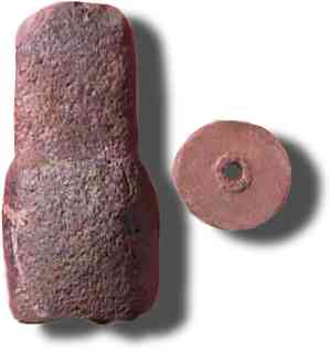 Новогородеевское городище. Плечиковый топор (камень) и пряслице (глина).