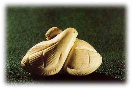 Нэцкэ "Куропатки" ( бивень мамонта) Длина 40 мм. Шайгинское городище.