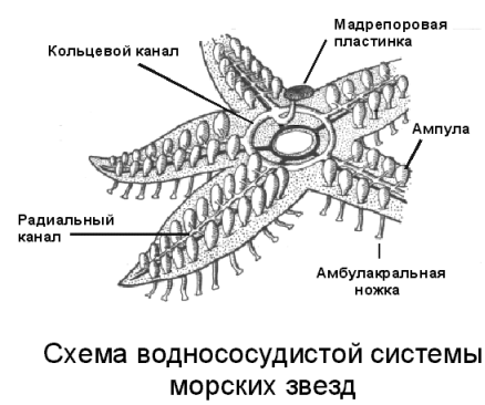 Схема воднососудистой системы морских звезд